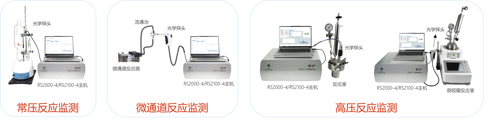 RS2000-4/RS2100-4在實(shí)驗(yàn)室有三種使用方式,三種方式所用的配件類型不同。