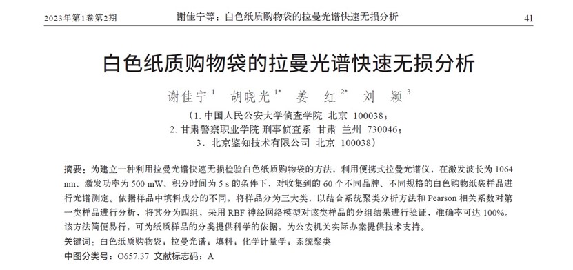 鑒知技術(shù)RS2100便攜式拉曼光譜儀對白色紙質(zhì)購物袋進(jìn)行快速無損分析